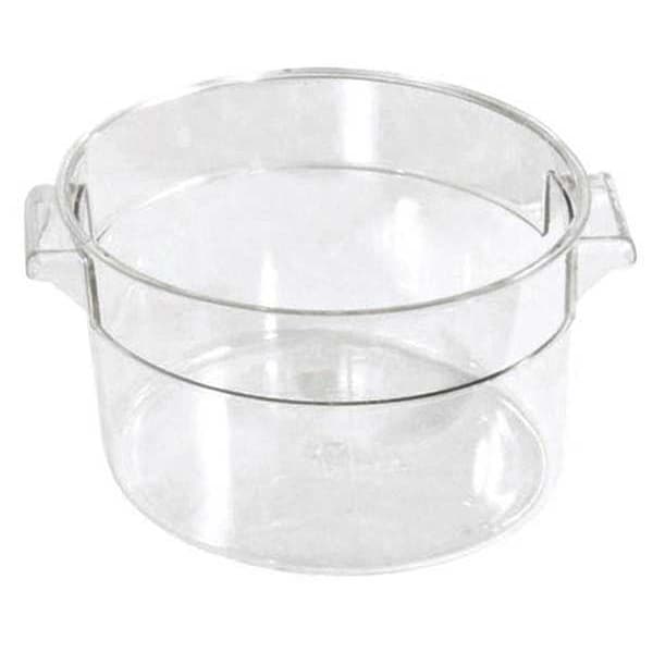 Round Storage Container, Stackable, Capacity (Qt.) 1, Overall Length (In.) 6-1/4, Overall Width (In.) 5-1/4, Overall Height (In.) 5, Overall Depth (In.) 5, Inside Dia. (In.) 4-3/4, Outside Dia. (In.) 6-1/4, Color Clear, Handle Yes, Handle Color Clear, Material Plastic, For Use With Food, NSF STD