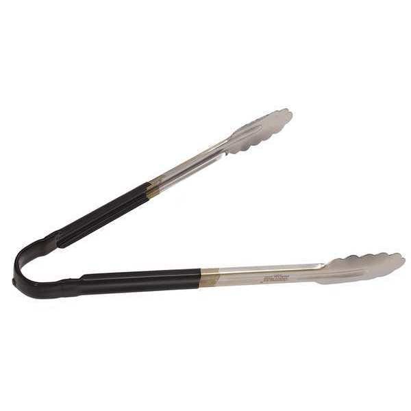 Tong, Black, 12 in. L, Stainless Steel