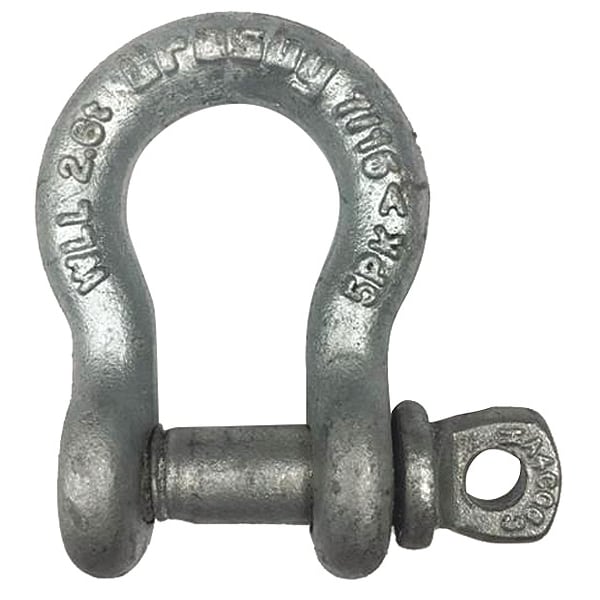 Anchor Shackle, Shackle Type Anchor Shackle, Lifting Capability For Lifting, Working Load Limit 5,330 lb, Width Between Eyes 3/4 in, Body Material Alloy Steel, Inside Length 1 11/16 in, Inside Width 1 3/16 in, Body Thickness 7/16 in, Body Color Silver, Body Finish Galvanized, Pin Type Removable Screw Pin, Pin Diameter 1/2 in, Pin Material Alloy Steel, Pin Color Silver, Pin Finish Galvanized, Minimum Operating Temperature -40 Degrees F, Maximum Operating Temperature 400 Degrees F