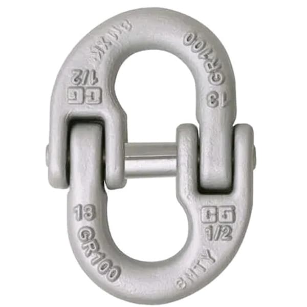 Connecting Link, Grade 100, Link Type Hammerlock, Overall Length 5 13/16 in, Material Alloy Steel, Overall Width 4 in, Product Type Connecting Link, Compatible Chain Trade Size 5/8 in, Trade Size 5/8 in, Working Load Limit 20,600 lb, Finish Plain, Number of Coupling Links Not Applicable, Lifting Capability For Lifting, Inside Length 4 1/4 in, Standards ASTM A952, Fabrication Forged, Weight 3.1 lb, Inside Width 1 11/32 in, Compatible Chain Grade 80, 100, Material Thickness 25/32 in