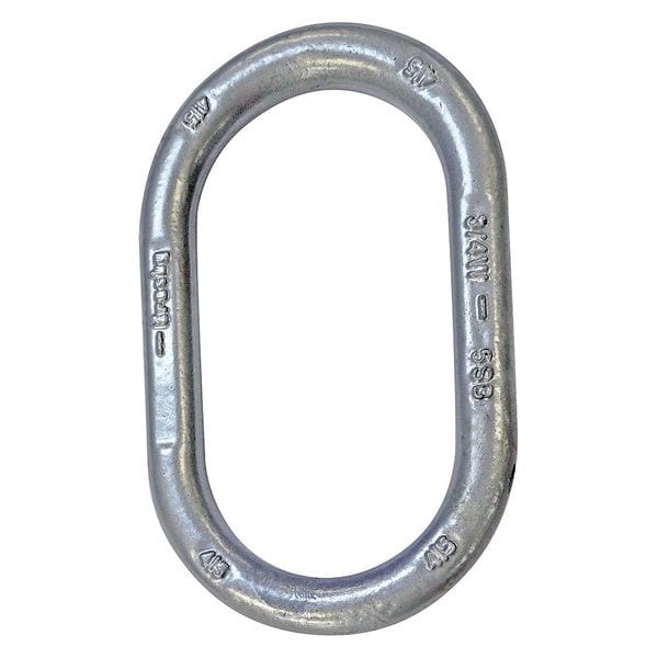 Master Link, Grade 80, Link Type Master Link, Overall Length 7 1/2 in, Material Alloy Steel, Overall Width 4 5/16 in, Product Type Master Link, Compatible Chain Trade Size 1 in, Trade Size 3/8 in, Working Load Limit 26,000 lb, Finish Plain, Number of Coupling Links Not Applicable, Lifting Capability For Lifting, Inside Length 7 1/2 in, Standards ASME B30.26, ASTM A952, Weight 6.1 lb, Inside Width 4 5/16 in, Material Thickness 1 3/32 in, Coupling Link Inside Length Not Applicable