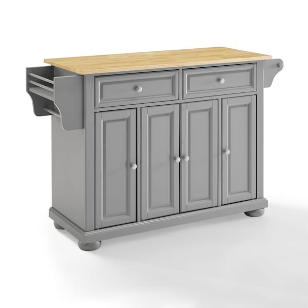Alexandria Wood Top Rolling Kitchen Island Storage Cart, Microwave Stand, Spice Rack