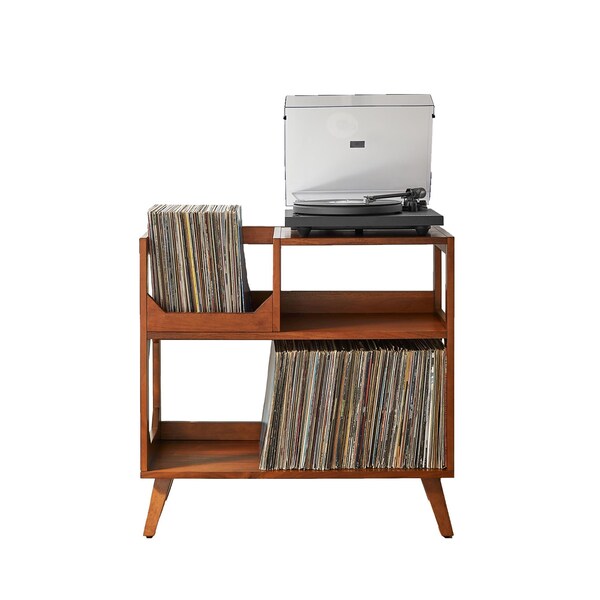 Asheville Mid-Century Modern Media Console Record Player Stand, Storage for Vinyl Records