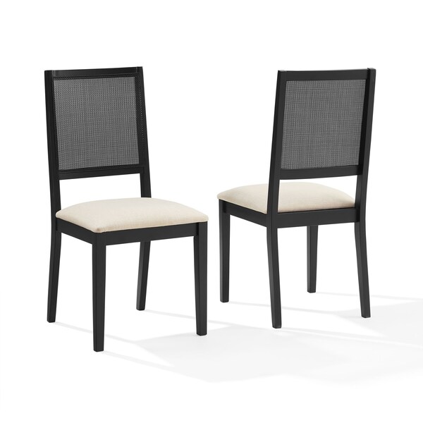 Greer Modern Rattan Style Back Black Dining Room Chairs Set of 2, Kitchen Chair