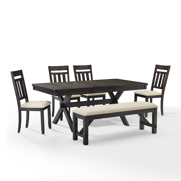 Hayden 6-Piece Modern Farmhouse Dining Table Set for 7 w/ 4 Slat Back Chairs and a Bench