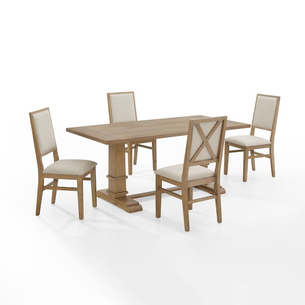Joanna 5-Piece Modern Farmhouse Dining Table Set for 4 with Upholstered Chairs