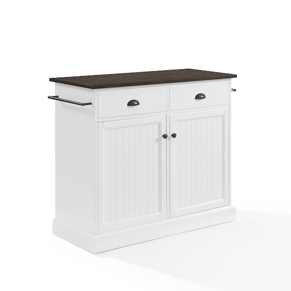 Shoreline Kitchen Island, Microwave Stand, Coffee Bar, with Shelves and Drawers