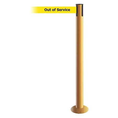 Barrier Post with Belt, Yellow, 7 1/2 ft Length, 36 1/2 in Post Height, Danger Keep Out