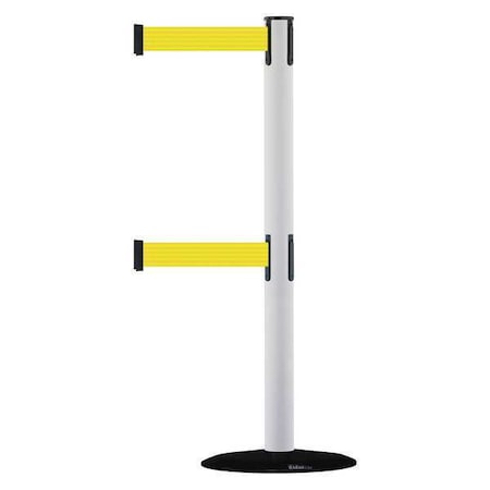 Barrier Post with Belt, Yellow, 7 1/2 ft Length, 38 in Post Height, No Legend, Unfinished