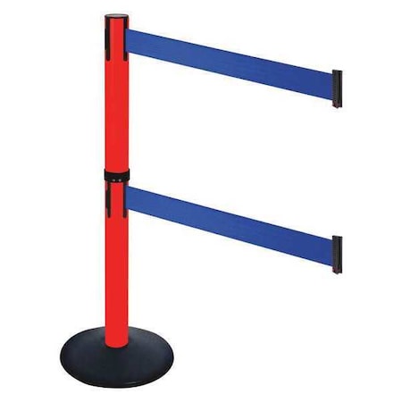 Retractable Belt Barrier, Blue, 13 ft Length, Polished Stainless