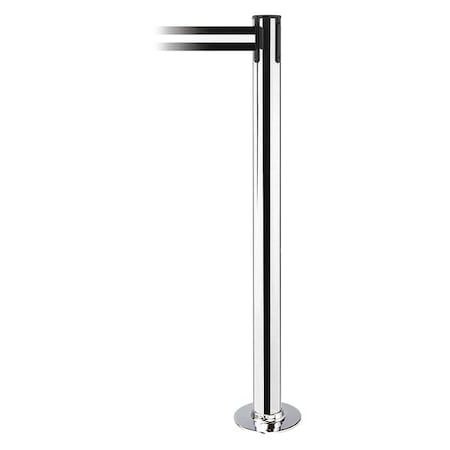 Barrier Post with Belt, 13 ft Length, 36 1/2 in Post Height, No Legend, Polished chrome