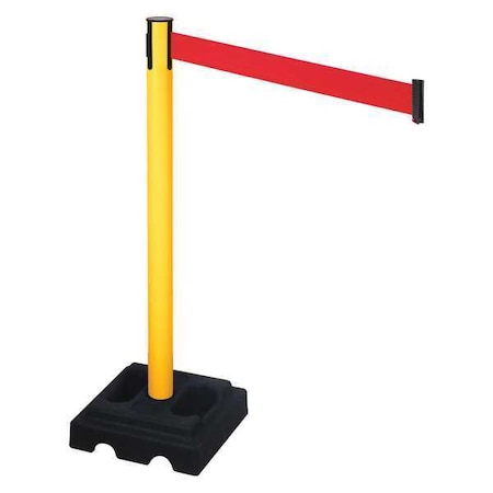 Barrier Post with Belt, Black, 10 ft Length, 40 in Post Height, No Legend, Powder Coated
