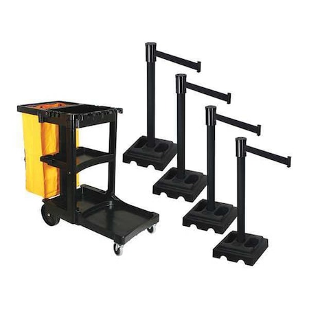 Barrier Post with Belt, Black, 10 ft Length, 40 in Post Height, Caution Do Not Enter, Powder Coated