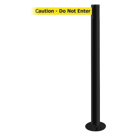 Barrier Post with Belt, Black, 7 1/2 ft Length, 36 1/2 in Post Height, Caution Do Not Enter