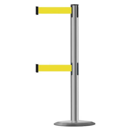 Barrier Post with Belt, Yellow, 7 1/2 ft Length, 38 in Post Height, Cleaning in Progress