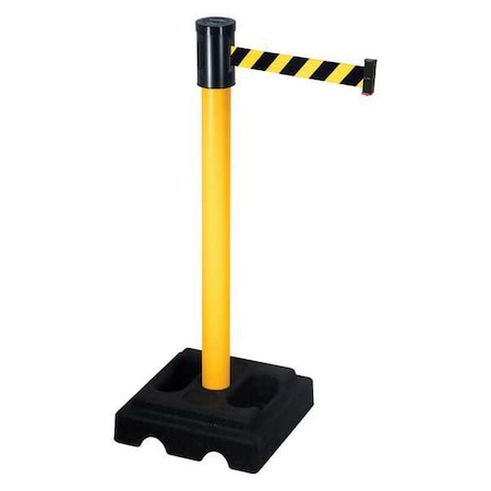 Barrier Post with Belt, Yellow, 10 ft Length, 40 in Post Height, Caution Do Not Enter, Yellow