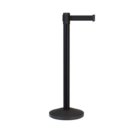 Barrier Post with Belt, Black, 10 ft Length, 40 in Post Height, No Legend, Powder Coated