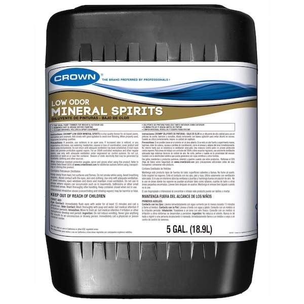 Crown low odor mineral spirits is a superior thinner for use in reducing most brush applied alkyd and oil paints, varnishes and enamels. Use wherever a paint thinner or mineral spirits is recommended by a paint manufacturer. May also be used in place of Turpentine.
