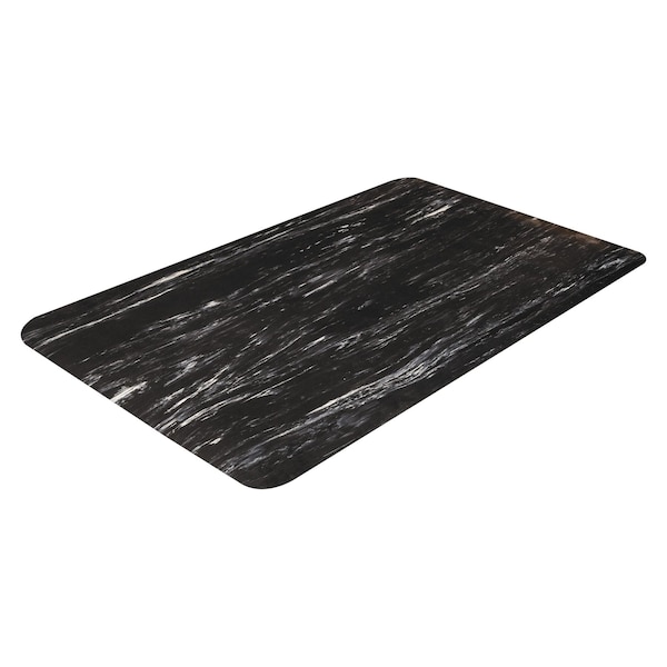 Antifatigue Mat, 36" L x 24" W, 0.5" Thickness, Marbleized Rubber, Black
