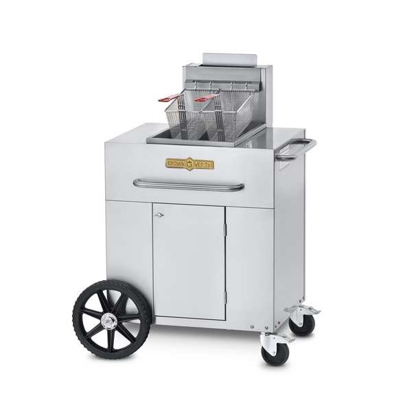 Portable Fryer, Capacity 40 lb, Number of Fry Pots 1, Overall Height 48 3/4 in, Overall Width 38 in, Overall Depth 30 1/2 in, Material Stainless Steel, Heating Capacity 90,000 BtuH, Maximum Operating Temperature 400 Degrees F, Tank Capacity 30 lb Tank, Caster Diameter 5 in, Caster Type (2) Total Lock, Drain Type 1 1/4 in Full Port Ball Valve, Includes Drain Valve with Drain Pipe Extension, (2) Fry Baskets, Tank Cover, Minimum Operating Temperature 200 Degrees F, Power Source Propane