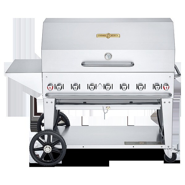 Propane Grill, Heat Source Propane, Overall Height 37 in, Overall Diameter Not Applicable, Overall Depth 28 in, Overall Length 69 in, Number of Burners 7, Cooking Surface Depth 21 in, Cooking Surface Width 46 in, Heating Capacity 114,000 BtuH, Tank Capacity One 20 lb Tank, Material Stainless Steel, Caster Type (2) Locking Casters, Includes 1 x 48 in Bun Rack, 1 x 48 in Roll Dome, Weight 229 lb, Wheel Size 14 in