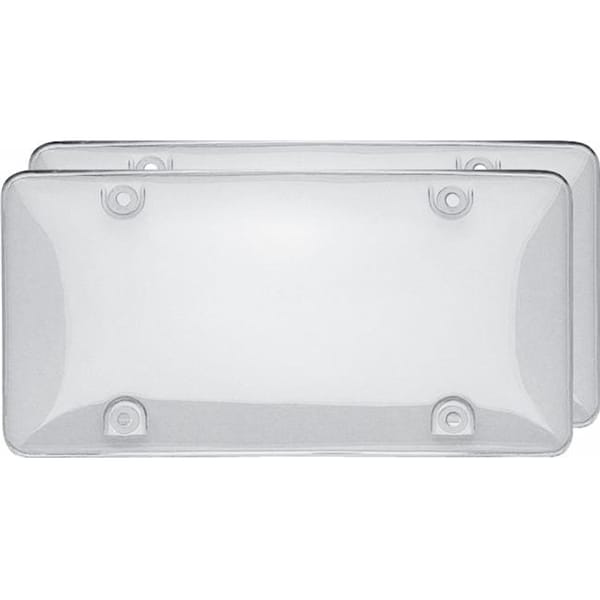 A set of two (2) clear bubble novelty plate shields to protect your license plates. The shields are acrylic with a UV resistant stabilizer to prevent discoloration. Designed to fit all novelty/license plates. Easy to install.Dimesnions: Length:12.38 Heihgt:0.83 Width:6.25