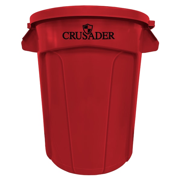 Round Heavy-duty Utility Container, 32 Gal, 22in Dia. x 27-3/10in H, PE, Red, NSF