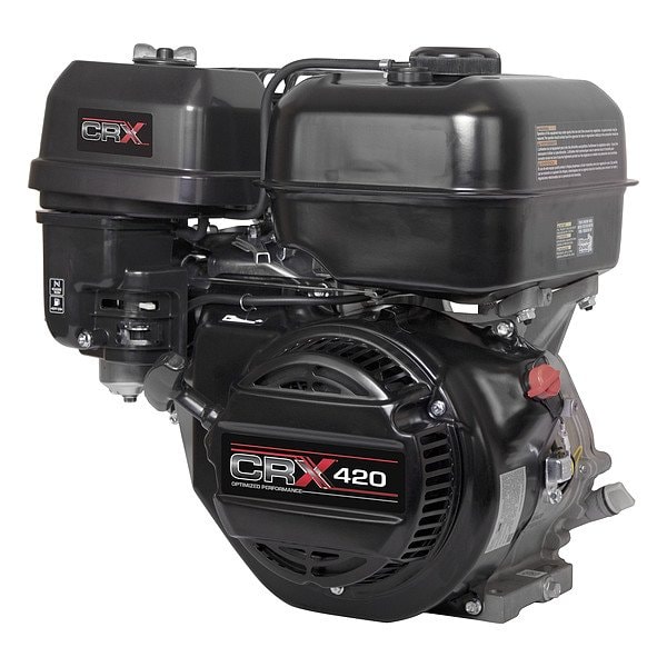 Engine, Engine Series CRX, Gross Torque 19.9 ft-lb, Horsepower 12 hp, Shaft Orientation Horizontal, Shaft Configuration Keyway 6.3mm X 56mm, Tapped 7/16 -20 UNF-2B, Shaft Diameter 1 in, Shaft Length 88 1/2 mm, Start Type Recoil, Maximum Speed 3,600 RPM, Muffler Yes, CARB Compliant CARB Non-Compliant, Engine Brand CRX, Engine Displacement 420 cc, Fuel Tank Capacity 2 gal, Overall Depth 17 1/4 in
