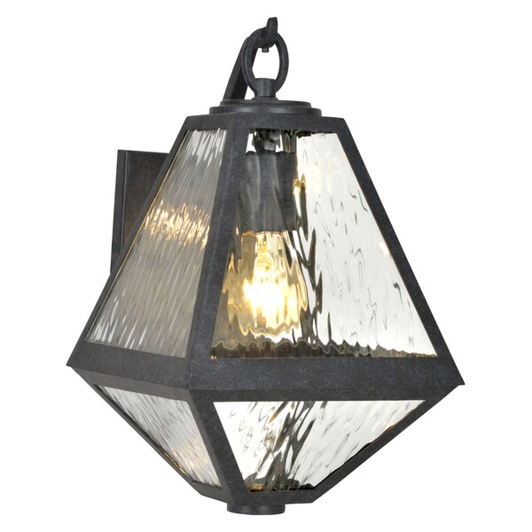 Artfully Water-Like Glass And Geometric Shapes Make A Focal Point In Any Area. Crafted In A Matte Black Finish With Watery Glass, This Modern And Vintage Wall Mount Is The Finishing Touch For Any Space.