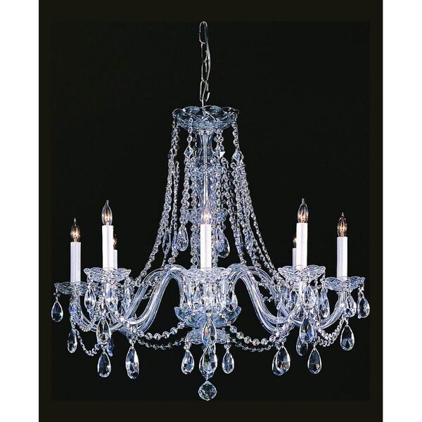 This Eight Light Up Chandelier is part of the Traditional Crystal Collection and has a Polished Chrome Finish. It is Dry Rated.