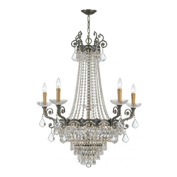 This Five Light Up Chandelier is part of the Majestic Collection and has a Historic Brass Finish. It is Dry Rated.