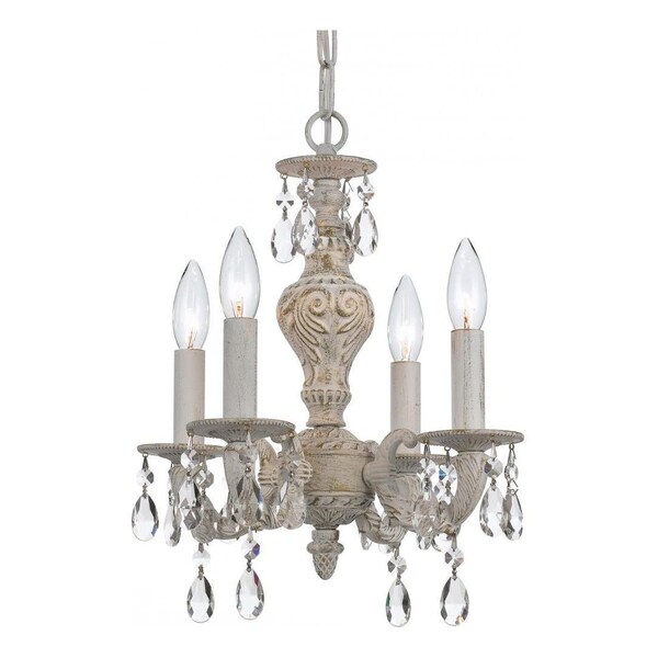 This Four Light Up Mini Chandelier is part of the Sutton Collection and has an Antique White Finish. It is Dry Rated.