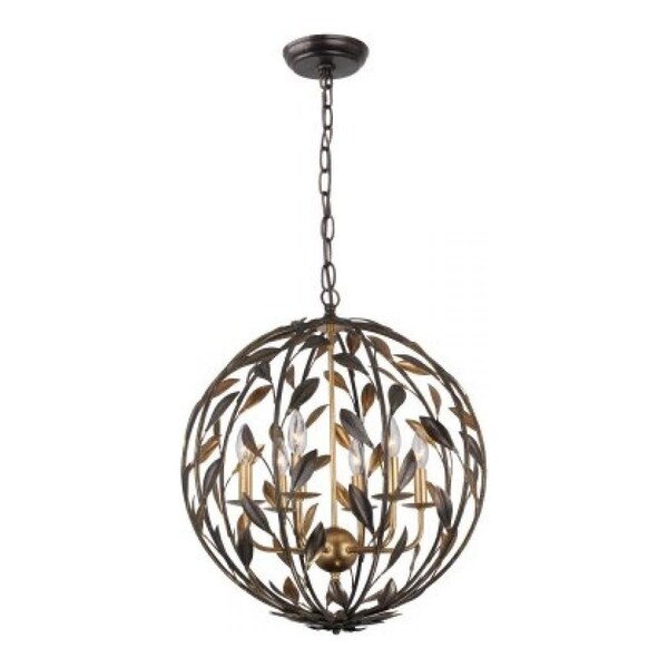This Six Light Up Chandelier is part of the Broche Collection and has an English Bronze + Antique Gold Finish. It is Dry Rated.