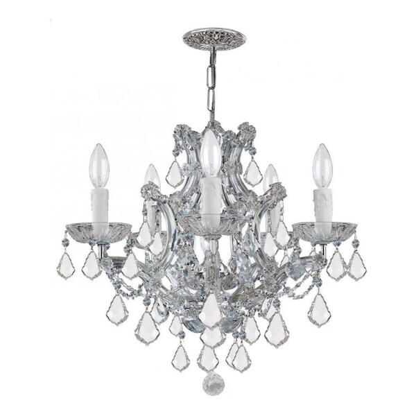 This Six Light Up Chandelier is part of the Maria Theresa Collection and has a Polished Chrome Finish. It is Dry Rated.