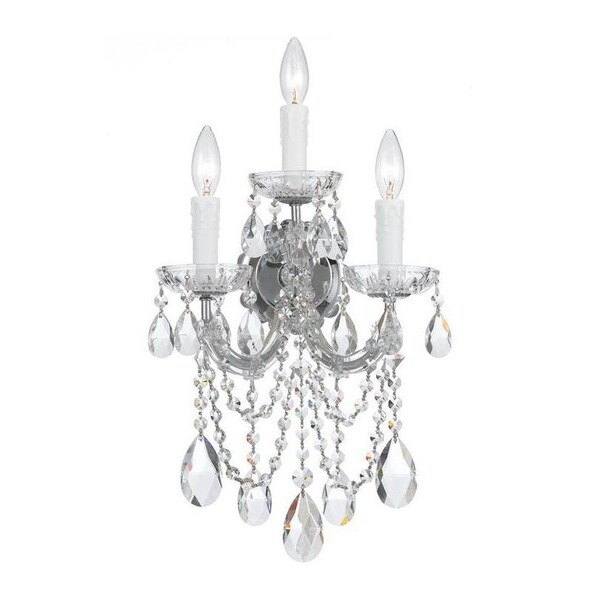 This Three Light Wall Light is part of the Maria Theresa Collection and has a Polished Chrome Finish. It is Dry Rated.
