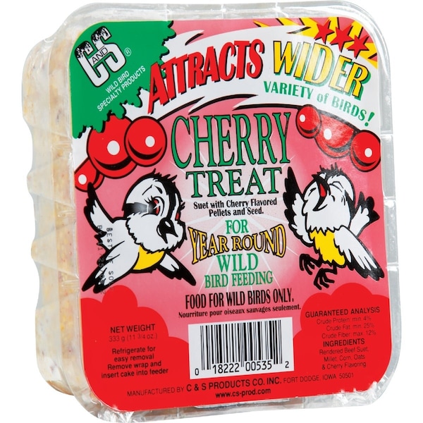 C&S Suet Treat Wild Bird Food is perfect for year round wild bird feeding. The high energy fat base is a quick and easy source of energy for the birds in your yard. C&Ss quality and special processes allow suet to be fed year round resulting in summer suet feeding success by our consumers. Refrigerate for easy removal. Remove wrap and insert into suet feeder.
