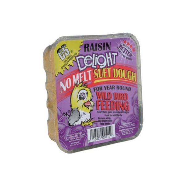 1175 OZ, Raisin Delight Suet Dough Cake, Corn, Rendered Beef Suet, Oats, Roasted Peanuts, Raisins, Soy Oil, Softer Than Other Suet Products, Attracting A Larger Variety Of Birds, Including Fruit Eaters Year, Allergen Statement, Product May Contain 1 Or All Of The Following Allergens Milk, Tree Nuts, Fish, Shellfish