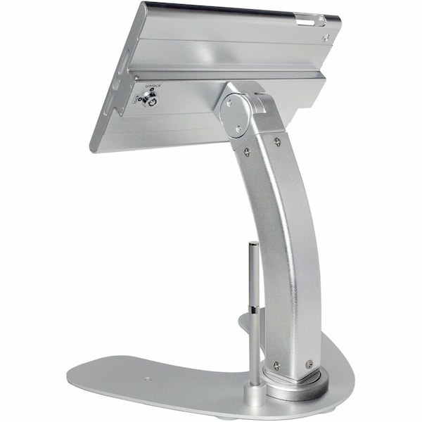 iPad Mini Security Stand, Compatible With Apple iPad Mini 1, Apple iPad Mini 2, Apple iPad Mini 3, Apple iPad Mini 4, Material Aluminum, Color Silver, Length 10-3/4 In., Width 8-1/2 In., Height 10-1/2 In., Includes Stylus