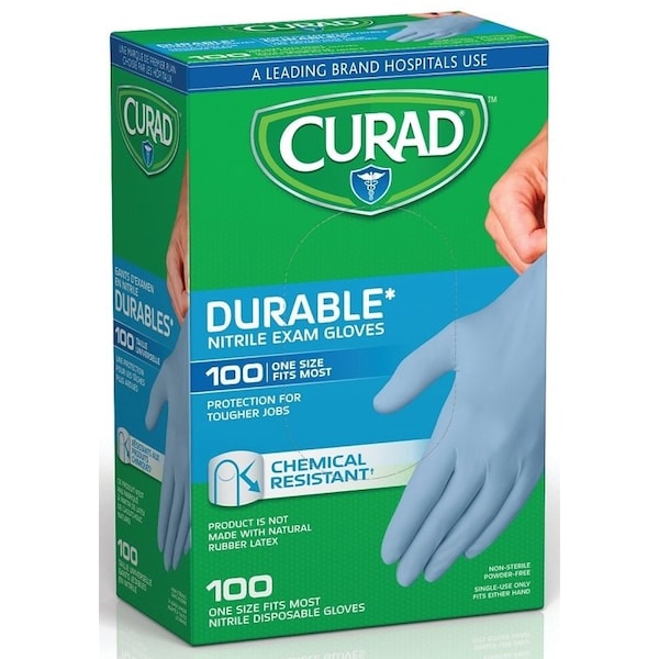 This nitrile powder-free exam glove is an excellent latex-free alternative. It is lightly textured for better grip and blue in color for greater visibility. Beaded cuff facilitates donning. These gloves are tested for use with chemotherapy drugs. Box of 100. One size fits most.