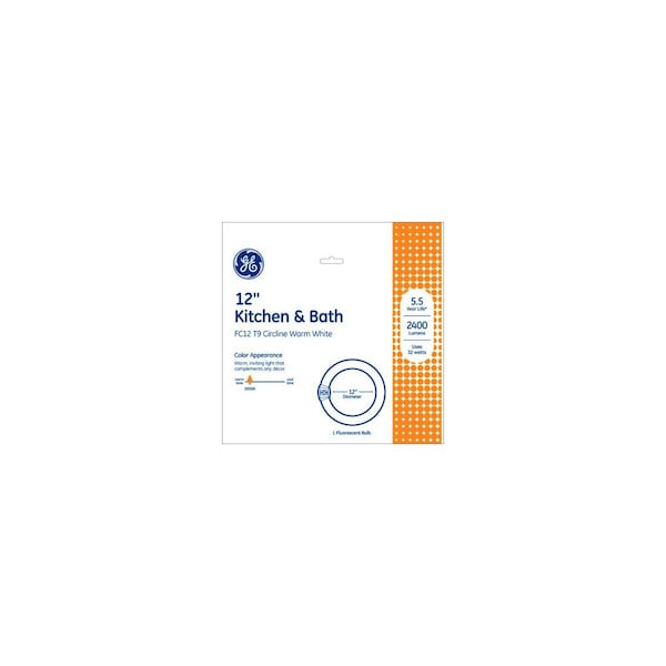 GE, FC12T9/KB, 32W, Circline Appliance Fluorescent Light Bulb, Kitchen & Bath, 12in Diameter, 4 Pin Base, 2400 Lumens, 9000 Hours, 3000 Kelvins, Cri=70.