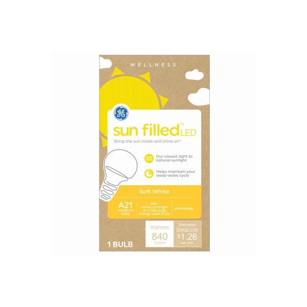 GE, 1PK, LED11DA21MSWSUNQOT1 11W A21 Medium Base, Frosted , MOL 767, 840 Lumens, Rated Life 15,000 Hours, IndoorOutdoor Use, Replaces 60W Incandescent, Sun Filled LED Close to Natural Sunlight, Color Temperature 2700K, Dimmable, CEC Approved E Star Approved, Boxed
