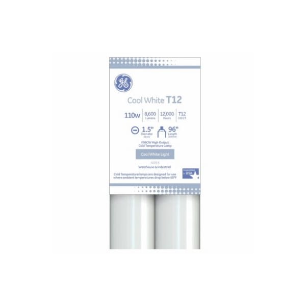 GE F96T12CWHOCT2PL, 2 Pack This is a 110 watt, acrylic T12 with a recessed double contact R17d base The bulb provides 8600 lumens and has a color temperature 4100 Kelvins With a CRI 78 and an MOL 96 The bulb is non dimmable , with a rated life of 12000 hours Cold Temperature lamp