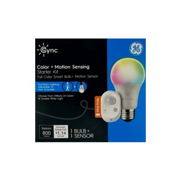 GE Cync CWLMSONNWW1STCLEDA199CD11 This is a 95 watt, plastic A19 with a medium base It is equivalent to a 60 watt incandescent The bulb provides 800 lumens and has a color temperature 2700 Kelvins With a CRI 90, and an MOL 443 The bulb is nondimmable, with a rated life of 15000 hours Frosted, soft white, battery powered motion sensor