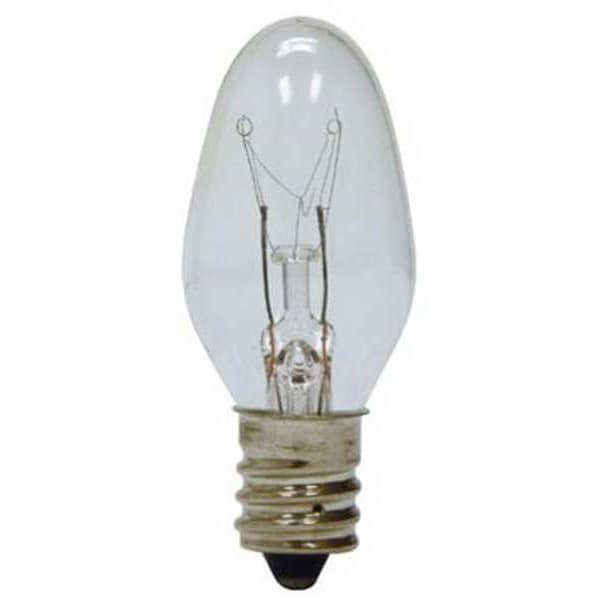 Incandescent Bulb, Bulb Base Type Candelabra Screw (E12), Bulb Shape C7, Bulb Finish Clear, Color Temperature 2700K, Lumens 46 lm, Light Technology Incandescent, Shatter-Resistant No, Trade Number 7C7 TRAY, Voltage 130V AC, Watts 7 W, Bulb Beam Angle 360 Degrees , Rated Life 3,000 hr, Dimmable Yes, Three-Way No, Light Color White, Rough Service No, Indoor/Outdoor Usage Indoor Only, Overall Length 2 1/8 in, Standards Meets 2012 Lighting Legislation Energy