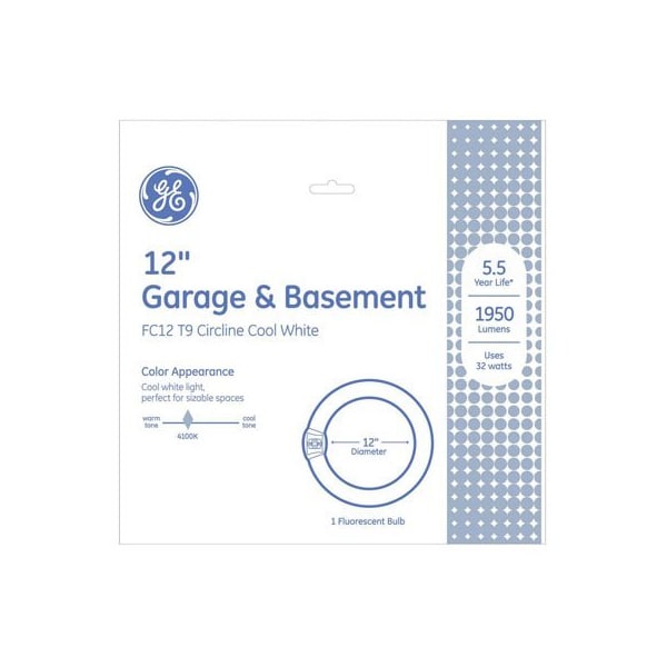 GE, FC12T9CW, 32W, Cool White Circline Tube, Fluorescent Light Bulb, 12 Outer Diameter, 4 Pin Base, 1950 Lumens, 12,000 Hours, 4150 Kelvin, Cri62