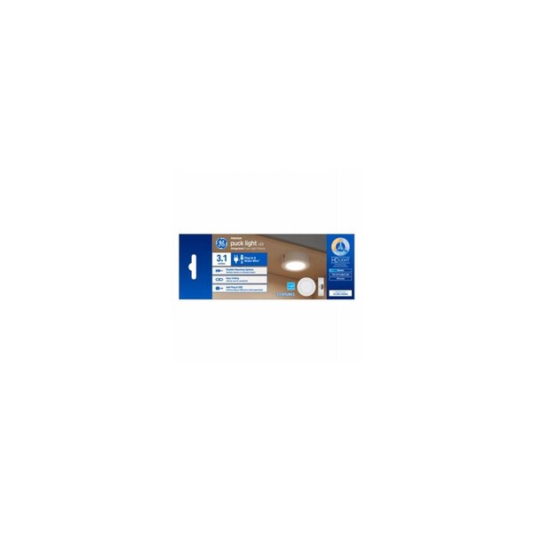 GE UNCPK03PJ030D93CWTLDO3P 3 Pack. This is a 4 watt puck light with a white plastic housing and a plug-in/direct wire base. The color temperature is adjustable between 3000-5000 Kelvins with lumens: 300. It has a CRI: 90 and an MOL: 3.10in. It is dimmable with a 50000 hour rated life. It is Energy Star rated and CEC exempt. Flexible mounting options surface or recessed. Easy linking. Twist trim to adjust color. Connect plug & USB port sold separately.