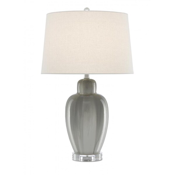 The ombre treatment on our Solita Gray Table Lamp makes the ceramic lamp's Rouleau shape artfully complex. With metal hardware in a polished nickel finish, an optic crystal finial, and off-white linen shade, this version of the Solita is complemented with a blue and white version in our line-up.