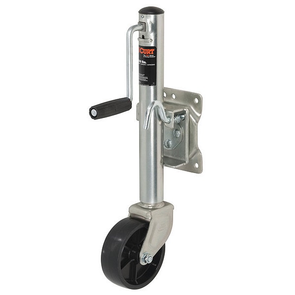 Trailer Jack, Number of Wheels 1, Static Load Capacity 1,200 lb, Maximum Lift Height 23 1/2 in, Minimum Lift Height 12 1/2 in, Handle Type Sidewind, Mounting Type Bolt-On, Gear Travel 10 in, Load Capacity 1,200 lb, Maximum Lifting Capacity 1,200 lb, Extended Length 23 1/2 in, Retracted Length 12 1/2 in, Jack Type Marine Jack, Base Wheel