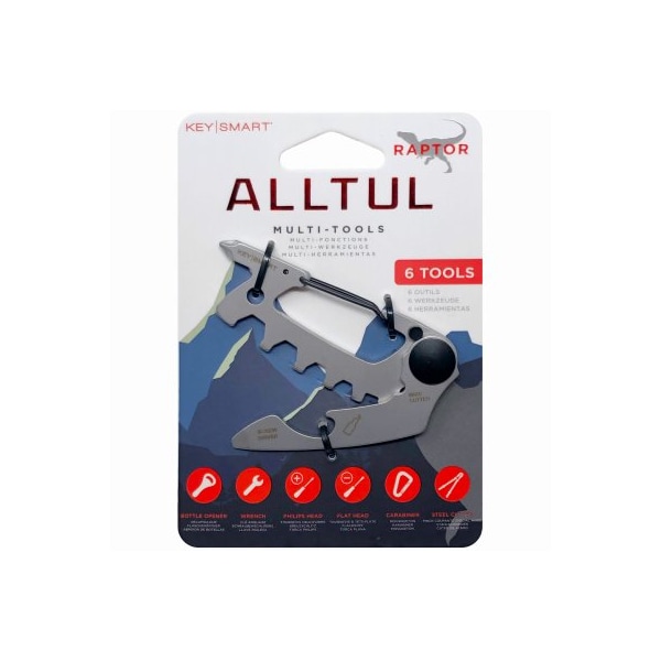 Stainless Steel, Alltul Multitool Raptor Key Use to open a beer, tighten a screw or cut a wire The sturdy carabiner lets you easily attach this cool tool your belt loop or bag