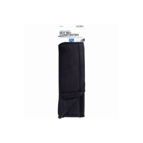 Black UltraSoft Seat Belt Pad, pad reduces seat belt irritation and adds padded comfort, soft black suede material, universal to fit most seat belts, hook, loop adhesion makes installation quick, easy